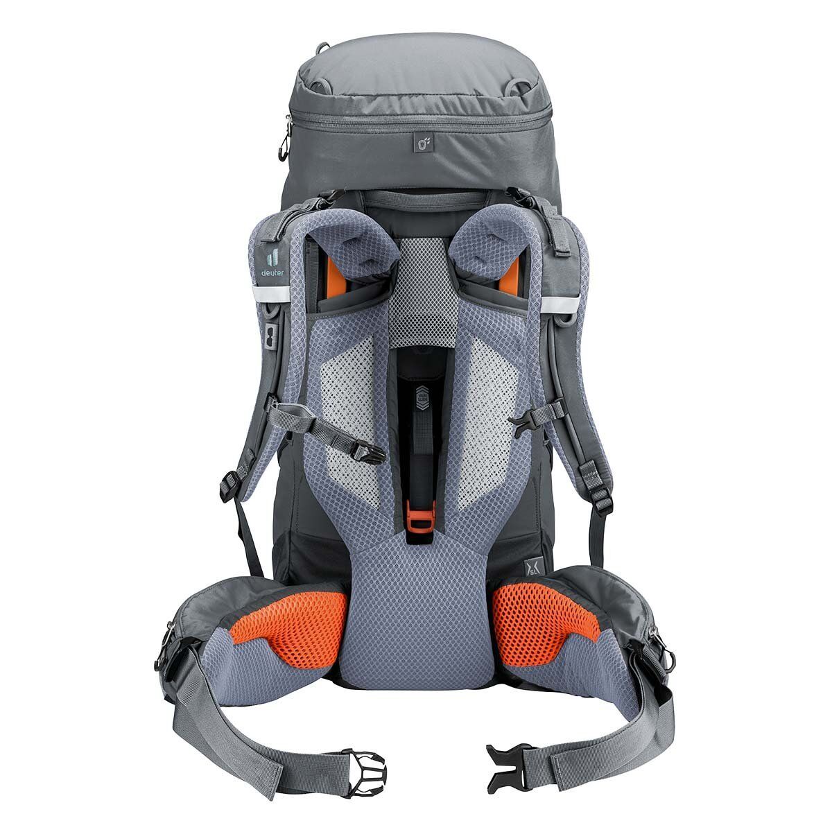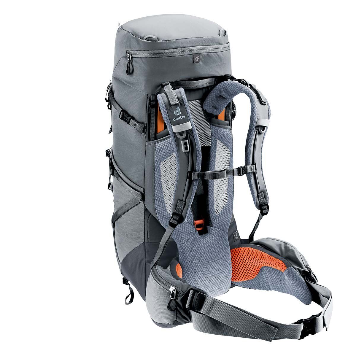 Deuter Aircontact Core konforlu sırt çantası, taahhüt veya ihtiyaç duyduğunuz donanıma bağlı olarak çeşitli öğeleri takmak için konumlandırılabilen modüler donanım kayışları sayesinde çok yönlüdür. Üstün taşıma konforu, Air Spacer fileli ve geniş bir havalandırma kanalına sahip deuter Aircontact sırt sistemine, ayrıca ergonomik omuz askılarına ve ayarlanabilir bir göğüs kemerine bağlıdır. Kalçaları saran hareketli kalça yüzgeçleri ve deuter'in ergonomik trapez şeklindeki bel yastığı ile birlikte Y şeklindeki çerçeve, yükü dağıtmak ve dengelemek için birlikte çalışır.
