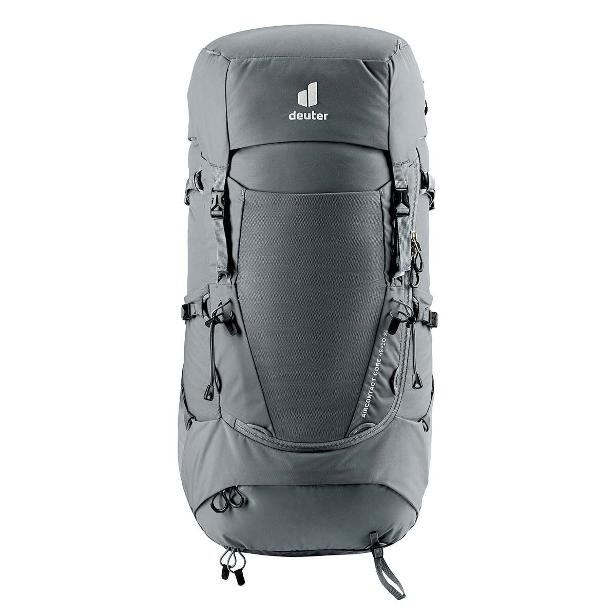 Deuter Aircontact Core konforlu sırt çantası, taahhüt veya ihtiyaç duyduğunuz donanıma bağlı olarak çeşitli öğeleri takmak için konumlandırılabilen modüler donanım kayışları sayesinde çok yönlüdür. Üstün taşıma konforu, Air Spacer fileli ve geniş bir havalandırma kanalına sahip deuter Aircontact sırt sistemine, ayrıca ergonomik omuz askılarına ve ayarlanabilir bir göğüs kemerine bağlıdır. Kalçaları saran hareketli kalça yüzgeçleri ve deuter'in ergonomik trapez şeklindeki bel yastığı ile birlikte Y şeklindeki çerçeve, yükü dağıtmak ve dengelemek için birlikte çalışır.