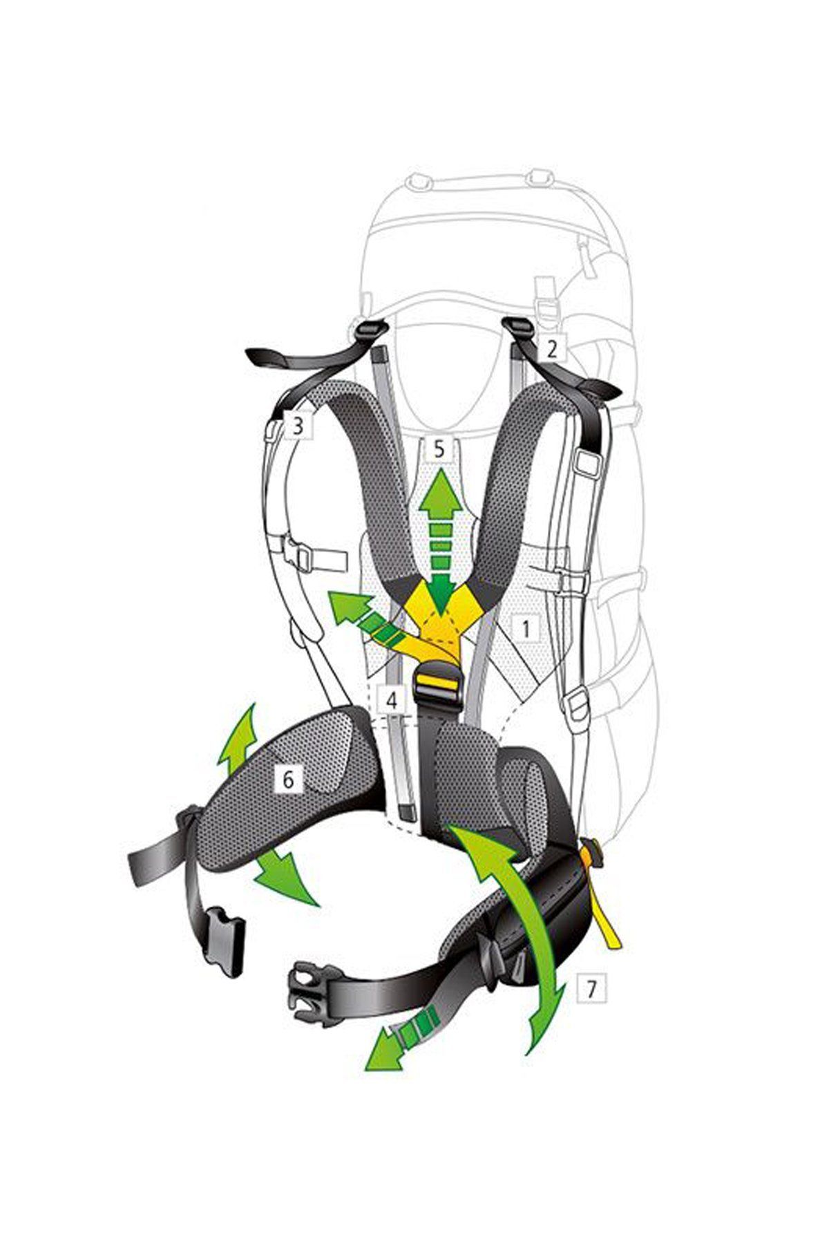 Bu yüksek performanslı yük transferi, omuz askılarına ve kalça kemerine doğrudan bağlı olan ergonomik şekilli iç V-çerçevele ile sağlanabilir. Sürtünme kayıpları olmadan, yükün% 70'ine kadarı kalça kemerine aktarılır. Aynı zamanda, dönen ActiveFit omuz askısı ve Vari Flex kalça kemeri sayesinde tam hareketliliğinizi koruyorsunuz. Aircontact Pro taşıma sistemi, 30 kiloya kadar yükler için tasarlanmıştır.