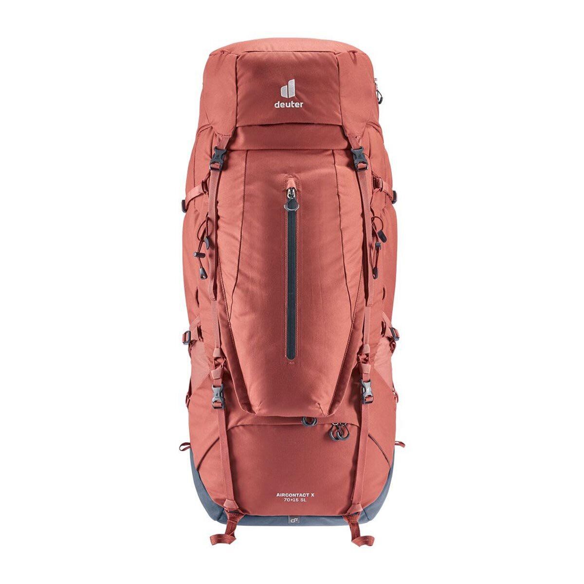 Deuter Aircontact X 70+15 SL Kadın Trekking Çantası, Modüler askılar çantayı çok yönlü hale getirir ve çantanın dış kısmına bağlamak için uyumludur. Bu çanta bluesign® sertifikalı gövde kumaşından üretilmiştir ve ayrılabilir bel desteğinde bulunan geniş iki cebi daha fazla saklama alanı sağlar. Ayrıca fermuarlı su kılıfı bulunur. Sırt uzunluğu ayarlama sistemi VariSlide, sıkıca oturan bel desteği VariFlex sistemi ve ActiveFit omuz askıları, hacmin ne kadar olduğuna bakmaksızın özel bir uyum yaratır ve Air Spacer file rahatlığı daha da arttırır.Deuter Aircontact X 70+15 SL Özellikler