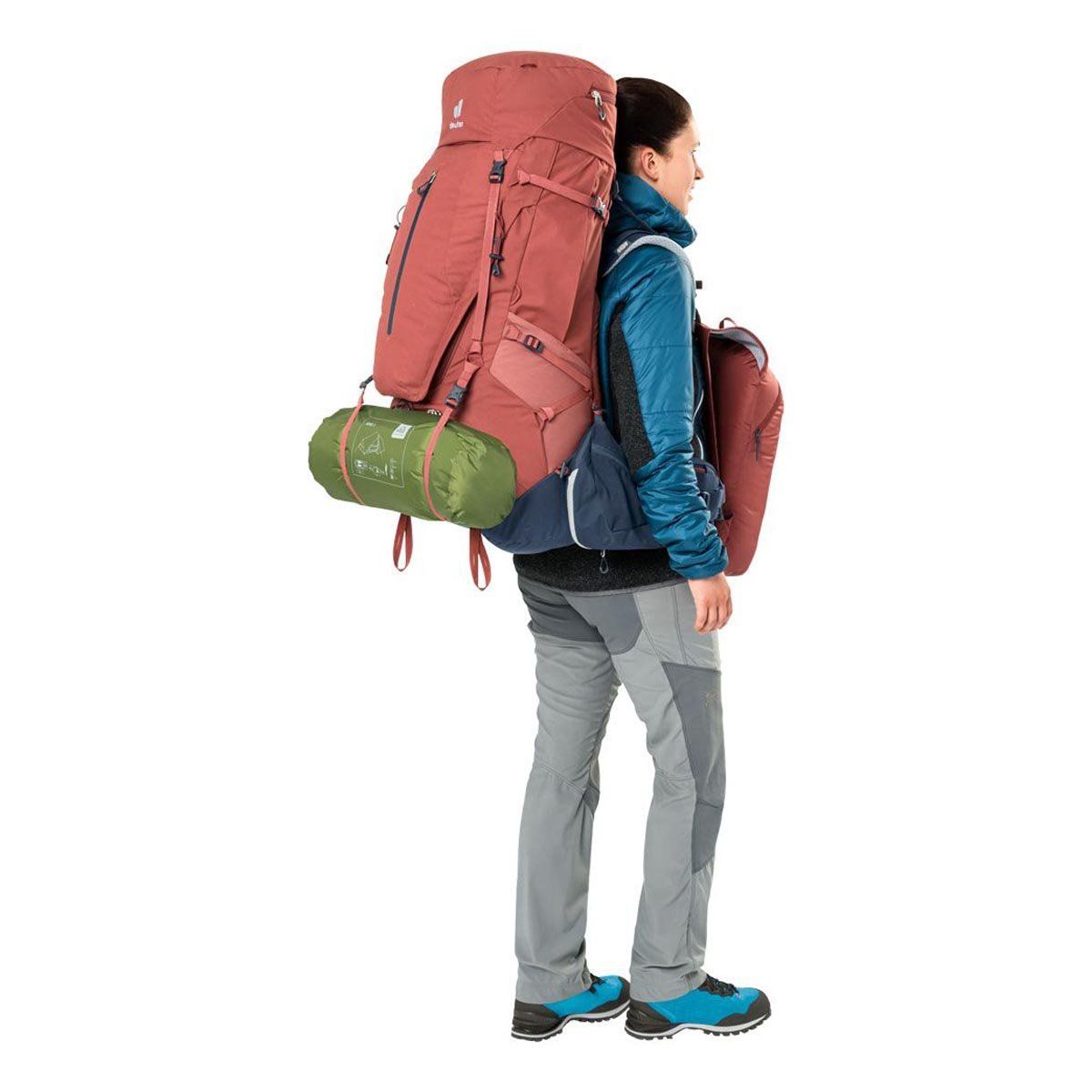 Deuter Aircontact X 70+15 SL Kadın Trekking Çantası, Modüler askılar çantayı çok yönlü hale getirir ve çantanın dış kısmına bağlamak için uyumludur. Bu çanta bluesign® sertifikalı gövde kumaşından üretilmiştir ve ayrılabilir bel desteğinde bulunan geniş iki cebi daha fazla saklama alanı sağlar. Ayrıca fermuarlı su kılıfı bulunur. Sırt uzunluğu ayarlama sistemi VariSlide, sıkıca oturan bel desteği VariFlex sistemi ve ActiveFit omuz askıları, hacmin ne kadar olduğuna bakmaksızın özel bir uyum yaratır ve Air Spacer file rahatlığı daha da arttırır.Deuter Aircontact X 70+15 SL Özellikler