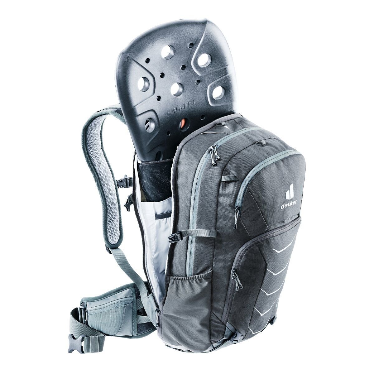 Deuter Attack 22 EL, en zorlu parkurlarda bile hırslı dağ bisikletçilerinin güvenliğini artıran TÜV/GS sertifikalı bir koruyucu sırt çantasıdır. Çoklu darbe korumasına sahip çıkarılabilir bir SAS-TEC sırt koruyucusu (darbenin şiddetine bağlı olarak) yaralanmaları önler. Yüksek kalça yüzgeçleri, sürüş ne kadar sert olursa olsun sıkı ve güvenli bir uyum sağlar. Ve yokuş yukarı sürüş yaparken, tam yüz kaskı ve koruyucu ekipman çantanın dışına hızla bağlanır.