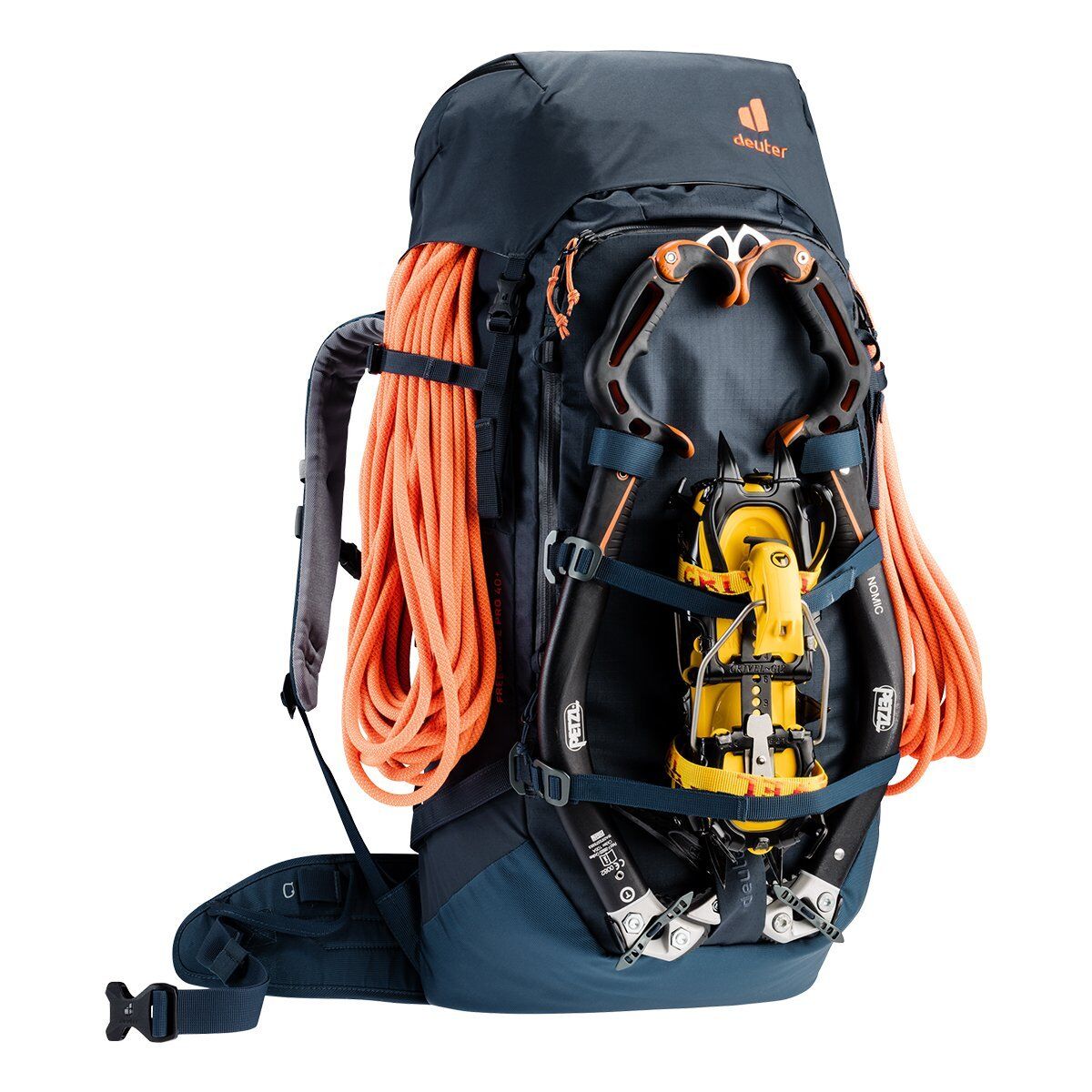 Deuter Freescape Pro, Hırslı dağcılar için çok yönlü bir çantadır. Teknik olarak zorlu turlar için tasarlanmıştır. İyi havalandırılan, güvenli uyum, yüksek taşıma konforu sunarken, menteşeli sırt, ekipmana hızlı erişim sağlar. Aynı zamanda, değişken sabitleme kayışları sayesinde kayaklar, snowboard veya kramponlar dışarıda sabit kalabilir. Sonda ve kürek için ayrı güvenlik bölmesine acil durumlarda hemen erişilebilir. Ayrıca dayanıklı, PFC içermeyen sırt çantası %100 geri dönüştürülmüş malzemeden yapılmıştır ve ana malzeme de bluesign® sertifikalıdır.