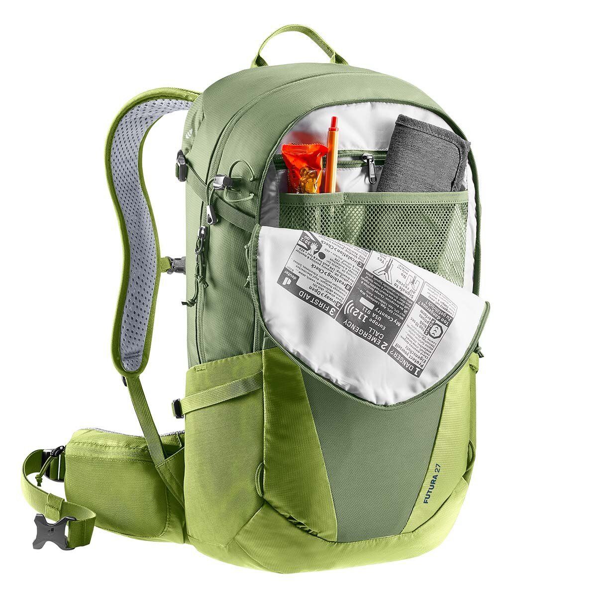 Deuter Futura 27, Bu hafif, teknik sırt çantası daha atletik günlük yürüyüşler için mükemmeldir: Aircomfort sırt sistemi son derece rahattır ve yeni stil file sırt boyunca maksimum hava akışı yaratır. Sonuç %25 daha az terleme ve dolayısıyla artan performanstır. Esnek file ön cep, hareket halindeyken ıslak giysileri havalandırmak için harikadır (örneğin, bir dağ deresinde kısa bir dalıştan sonra).