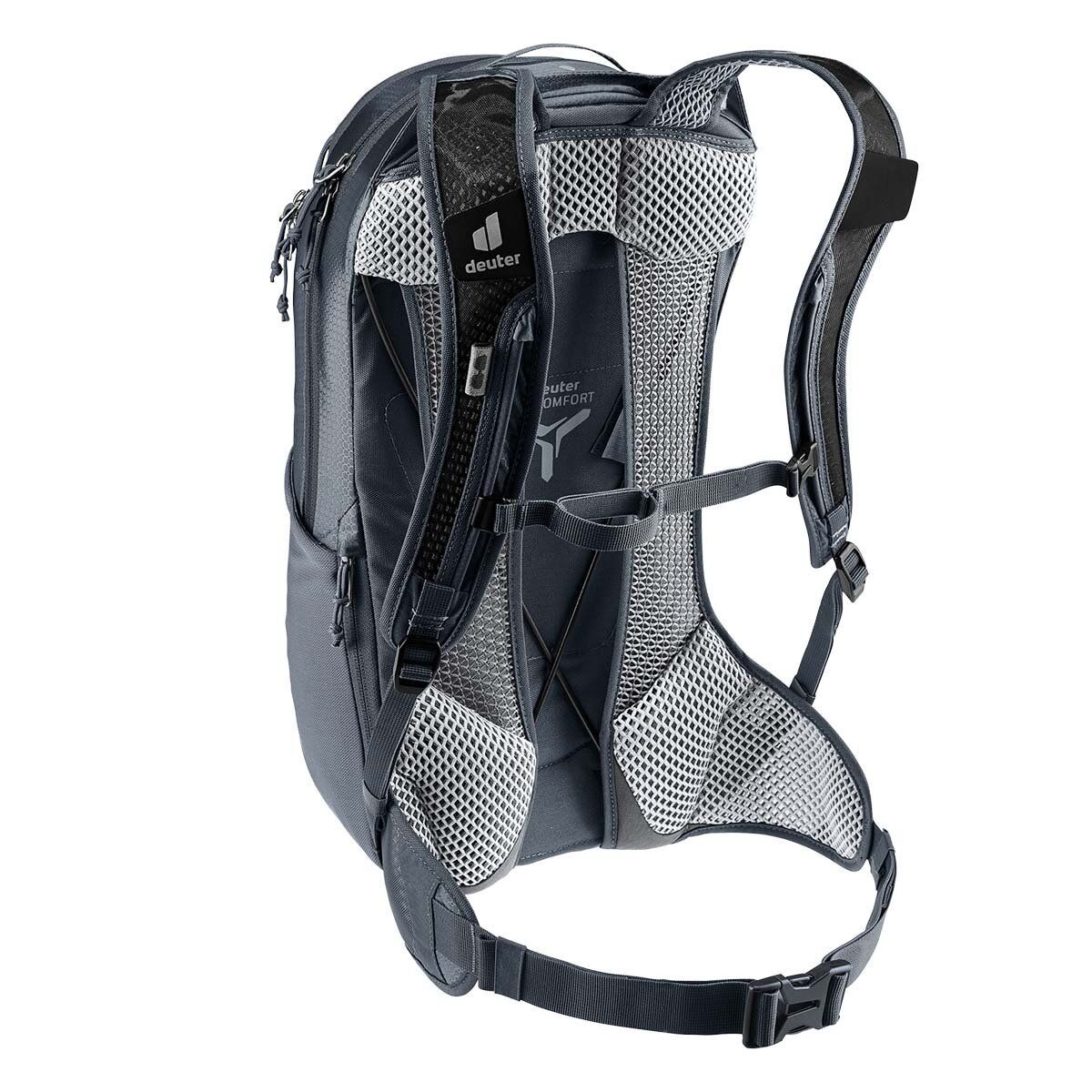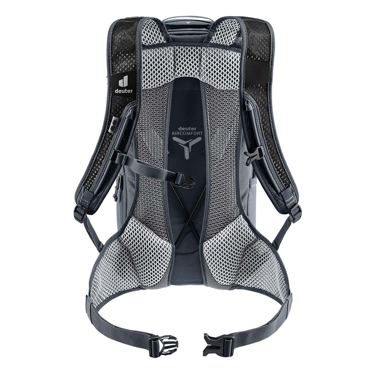 Deuter Arace Air, ağırlığına göre olağanüstü konfor sunan, ultra hafif ancak dayanıklı bisiklet sırt çantası. Bisiklet için özel olarak tasarlanmış Deuter Aircomfort sırt sistemi, ortadan ikiye bölünmüş file sırt paneliyle sırt çantasının daha az kısmının sırtla doğrudan temas etmesini sağlar ve sürüş pozisyonunda yuvarlak omurga için daha fazla alan yaratır. Hava alan file kalça kanatçıkları, delikli omuz askıları ve sırt dolgusu, maksimum hava akışı ve sağlam, tam oturan bir yapı sağlar. Bu iklim nötr, PFAS içermeyen dağ bisikleti sırt çantası, bluesign® onaylı %100 geri dönüştürülmüş gövde kumaşı ve çevre dostu, kaynak tasarruflu üretim uygulamalarıyla üretilen bileşenler kullanır.