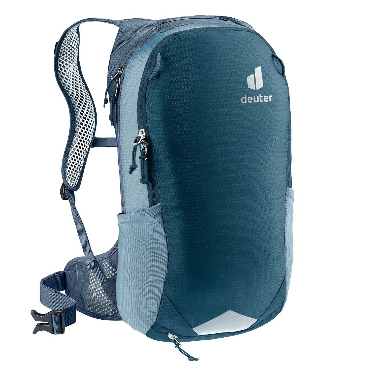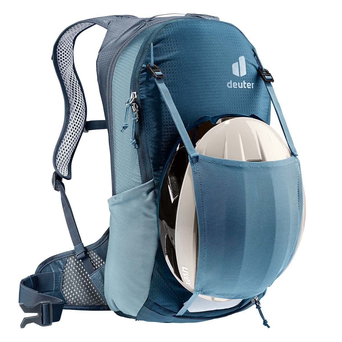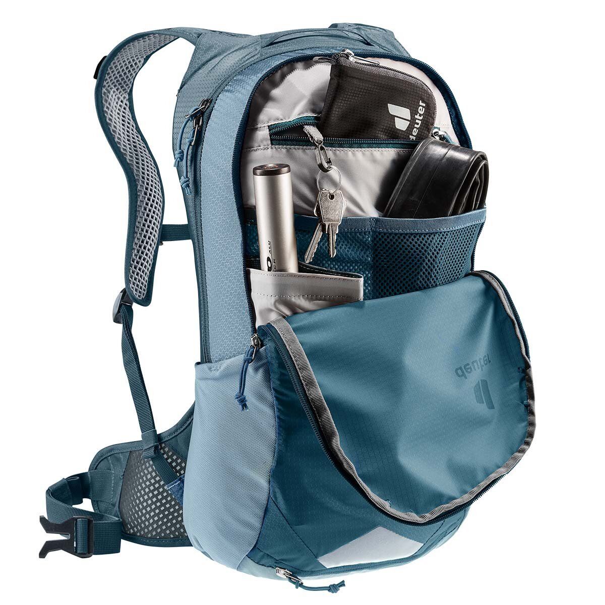 Deuter Race Air, ağırlığına göre olağanüstü konfor sunan, ultra hafif ancak dayanıklı bisiklet sırt çantası. Bisiklet için özel olarak tasarlanmış Deuter Aircomfort sırt sistemi, ortadan ikiye bölünmüş file sırt paneliyle sırt çantasının daha az kısmının sırtla doğrudan temas etmesini sağlar ve sürüş pozisyonunda yuvarlak omurga için daha fazla alan yaratır. Hava alan file kalça kanatçıkları, delikli omuz askıları ve sırt dolgusu, maksimum hava akışı ve sağlam, tam oturan bir yapı sağlar. Bu iklim nötr, PFAS içermeyen dağ bisikleti sırt çantası, bluesign® onaylı %100 geri dönüştürülmüş gövde kumaşı ve çevre dostu, kaynak tasarruflu üretim uygulamalarıyla üretilen bileşenler kullanır.