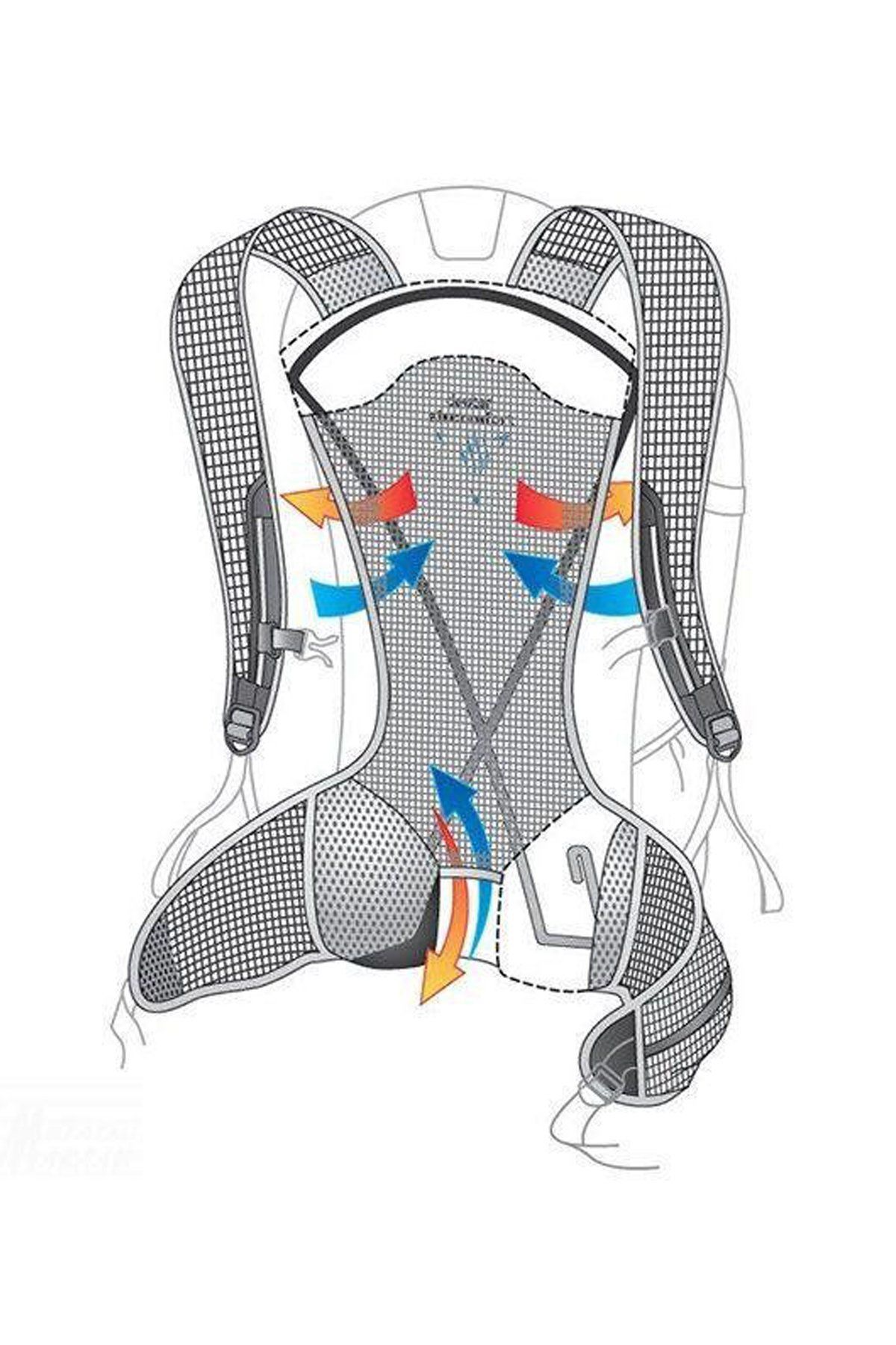 Yenilikçi örgü sırt sistemi, yüksek elastik çerçeve yapısı sayesinde maksimum havalandırmayı minimum ağırlıkla birleştirir. Bisiklet kullanırken gerekli olan serbest hareketliliği sağlar.