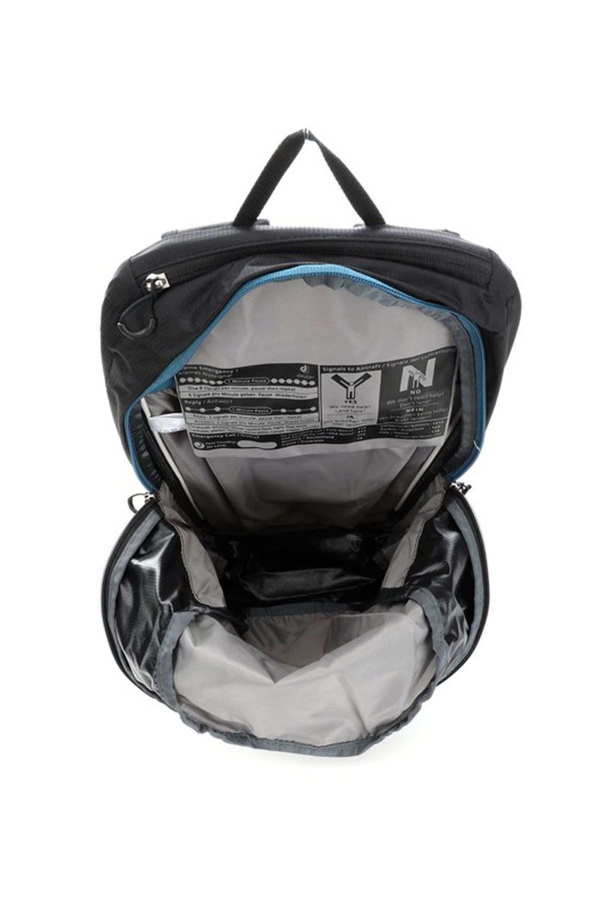 Küçük bir güvenlik ışığı, çantanın önündeki halkaya bağlanabilir.