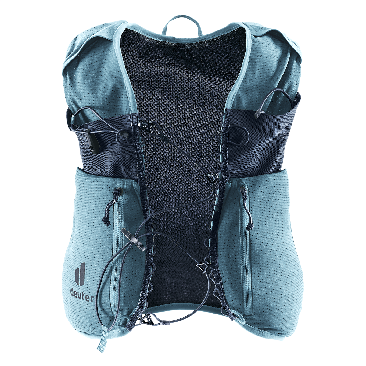 Deuter Traick 5 Koşu Çantası bluesing onaylı koşu hidrasyon yeleğinin giysi benzeri ytymy ve özel nedef alabilen esnek kumaşı, sıfır sıçarama ile sıkı bir uyum sağlar. Bungee göğüs kayış sistemi, tüm yoğunluk seviyelerinde gerginliğe hassas ayarlama ve tam nesef alma konforu sağlar. Modüler bungee kordonları, ek sıkıştırma veya eşyaları takmak için kullanılabilir. Her omur askısında dört kolay erişimli cep ve arkada doldurma cepleri bulunur, bu da patika koşu yeleğini iyi organize edilmiş de aldatıcı derecede geniş hale getirir.
