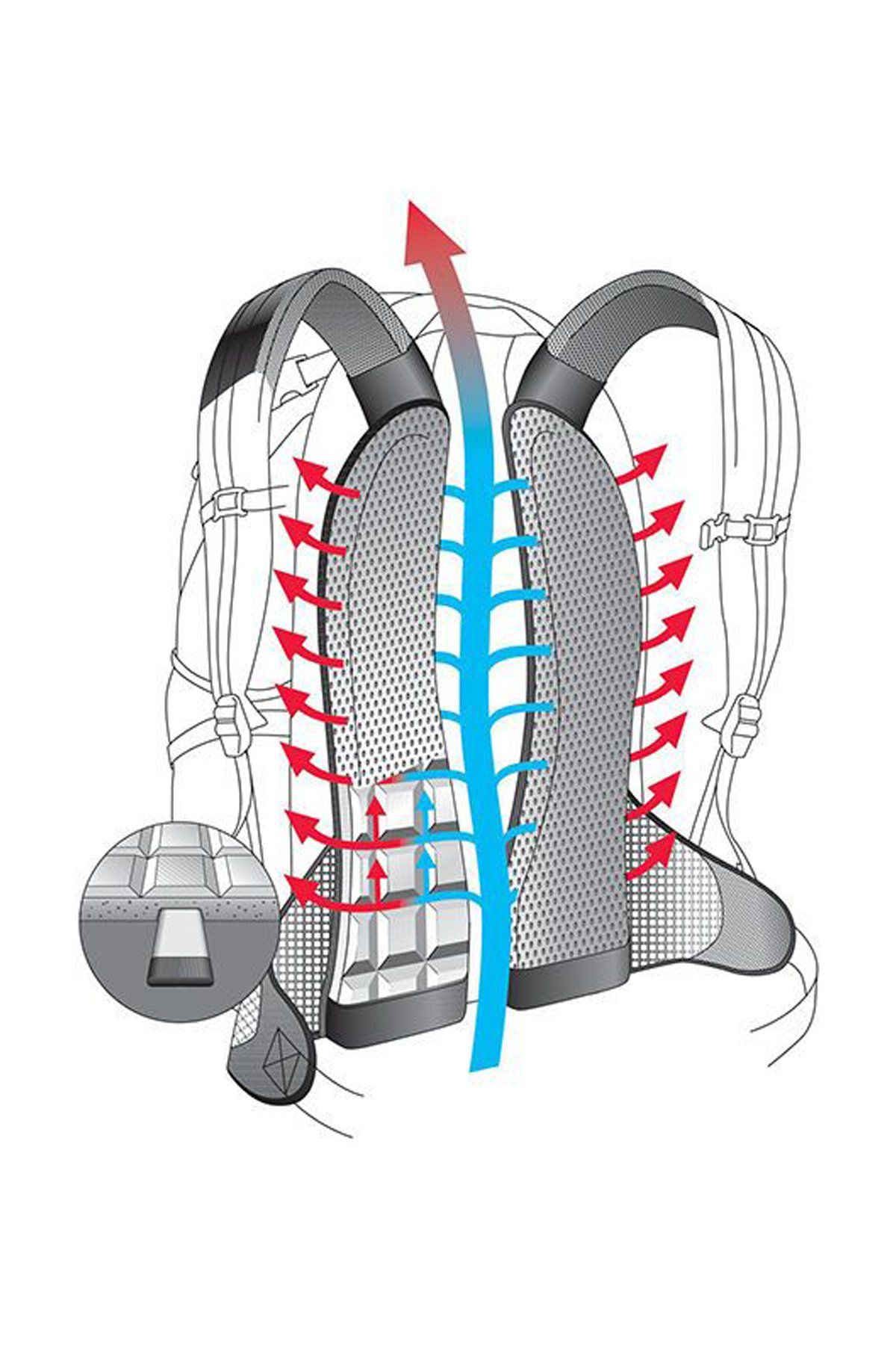 daha az terleme anlamına gelir: İki hava kanallı köpük şerit ve havalandırmalı örgü yapısı sırt ile olan temasın minimum olmasını garanti eder.