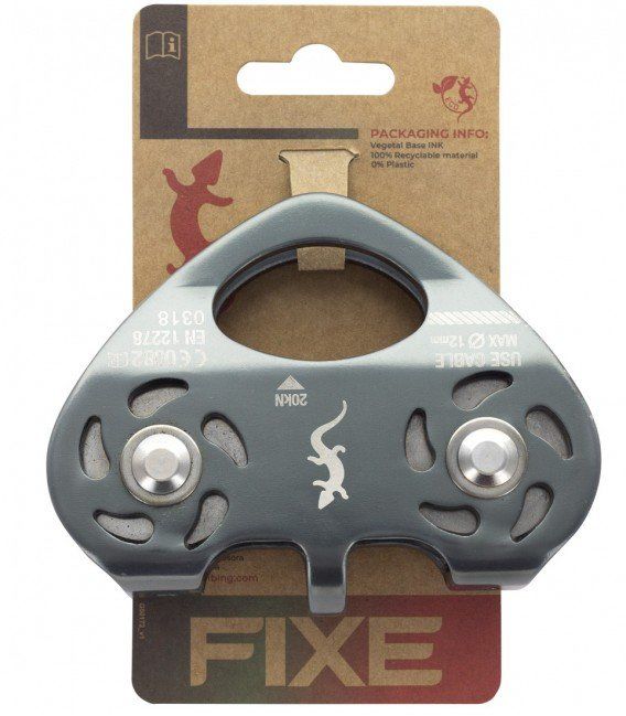 Zipline hatları ve kablo için çift eksenli makara. Paslanmaz çelikten imal edilmiştir. TEKNİK ÖZELLİKLER Malzeme: Alüminyum Ürün boyu: 83x108mm Biçim: Blister + PES çantası Ağırlık: 658g Halat özü çapı: Ø8 ila 12mm Kırılma Dayanımı: 20kN İş yükü: 10kN CEN Standardı: EN 12278 UIAA Standardı: 127 AMBALAJ BİLGİSİ Ambalaj, biyolojik olarak parçalanabilen ve geri dönüştürülmüş malzemelerden yapılmıştır. Sadece %4 sentetik malzeme ve %96 kağıt ve kraft kağıt içerir. Uygulanan boyaların tabanı bitkisel kökenlidir. Tüm ambalajları kağıt ve sentetik malzeme olarak geri dönüştürülmelidir. Fixe Hakkında Fixe, 1983'ten beri doğa sporlarınım lider markası. Fixe, 1983 yılında İspanya’nın geniş tırmanma alanlarıyla meşhur Montserrat, Terradets ve Siurana gibi dağlarında doğdu. Tırmanış camiasında kısa sürede bir referans marka haline geldi ve bugün ürünleri dünya çapında tanınmaktadır. 2011 yılında Fixe Faders ile güçlerini birleştirdi ve böylece Tech Rock grubu ortaya çıktı. 2012'de Dünyaca ünlü halat markası Roca Fixe grup bünyesine katıldı. Fixe, sektörde lider olduğunu bir kez daha teyit etti ve uluslararası pazarında önemli bir oyuncu oldu. Fixe Climbing bugün Halatlardan, teknik ekipmanlara Tırmanış Sporları, Dağcılık, Endüstriyel dağcılık & İş Güvenliği konularında dünyanın önde gelen firmaları arasında yer almaktadır.