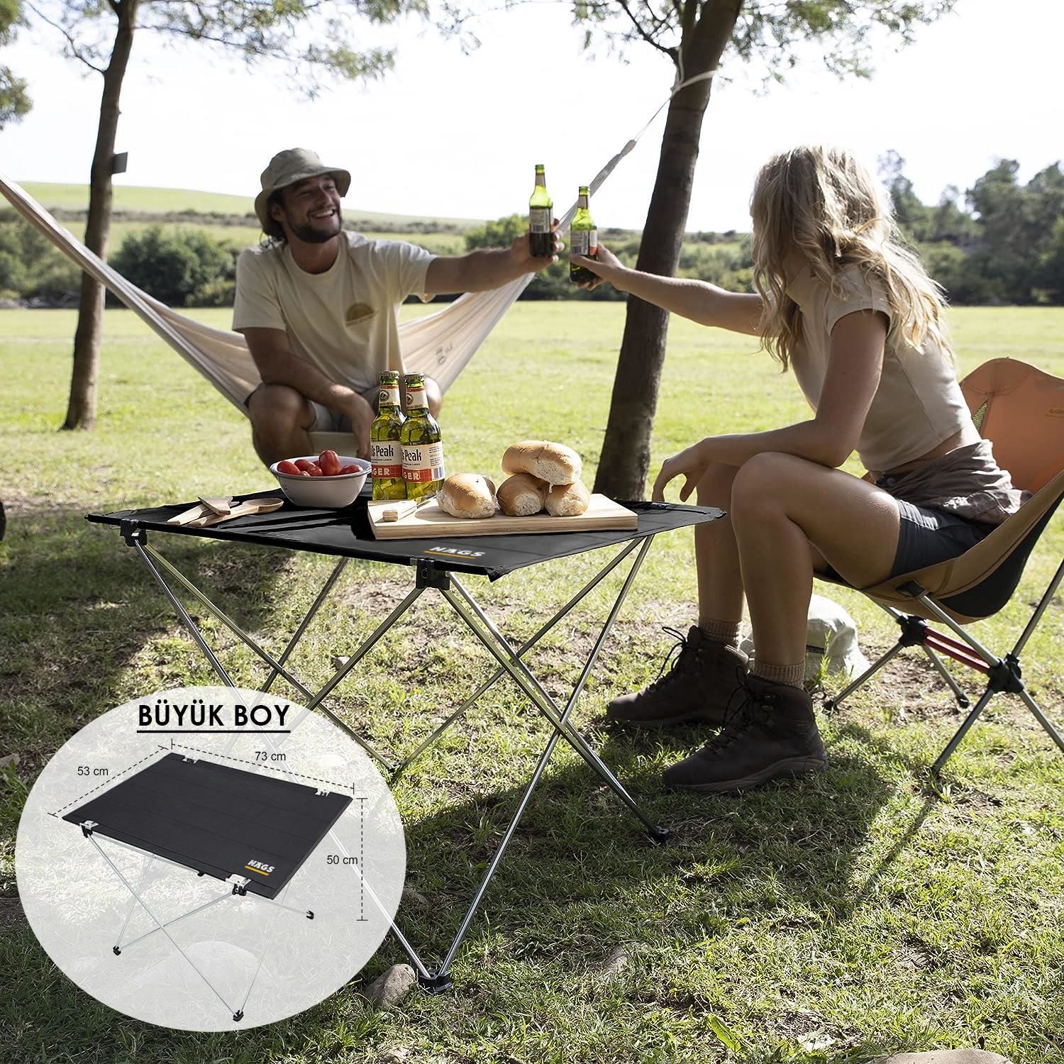 ✅ ÇOK YÖNLÜLÜK: Bu kamp masası, kamp yapma, piknik, barbekü, Yürüyüş, Hiking, Plaj, yürüyüş çantasıyla gezme ve balık tutma, ev içerisinde kullanma gibi tüm iç ve dış mekan aktiviteleriniz için mükemmeldir. Taşıma çantası sayesinde kolay taşıma ve organize bir şekilde saklama avantajı sağlar. Deponuzda veya arabanızın bagajında yer kaplamadan her zaman bulundurma imkânı sunar.