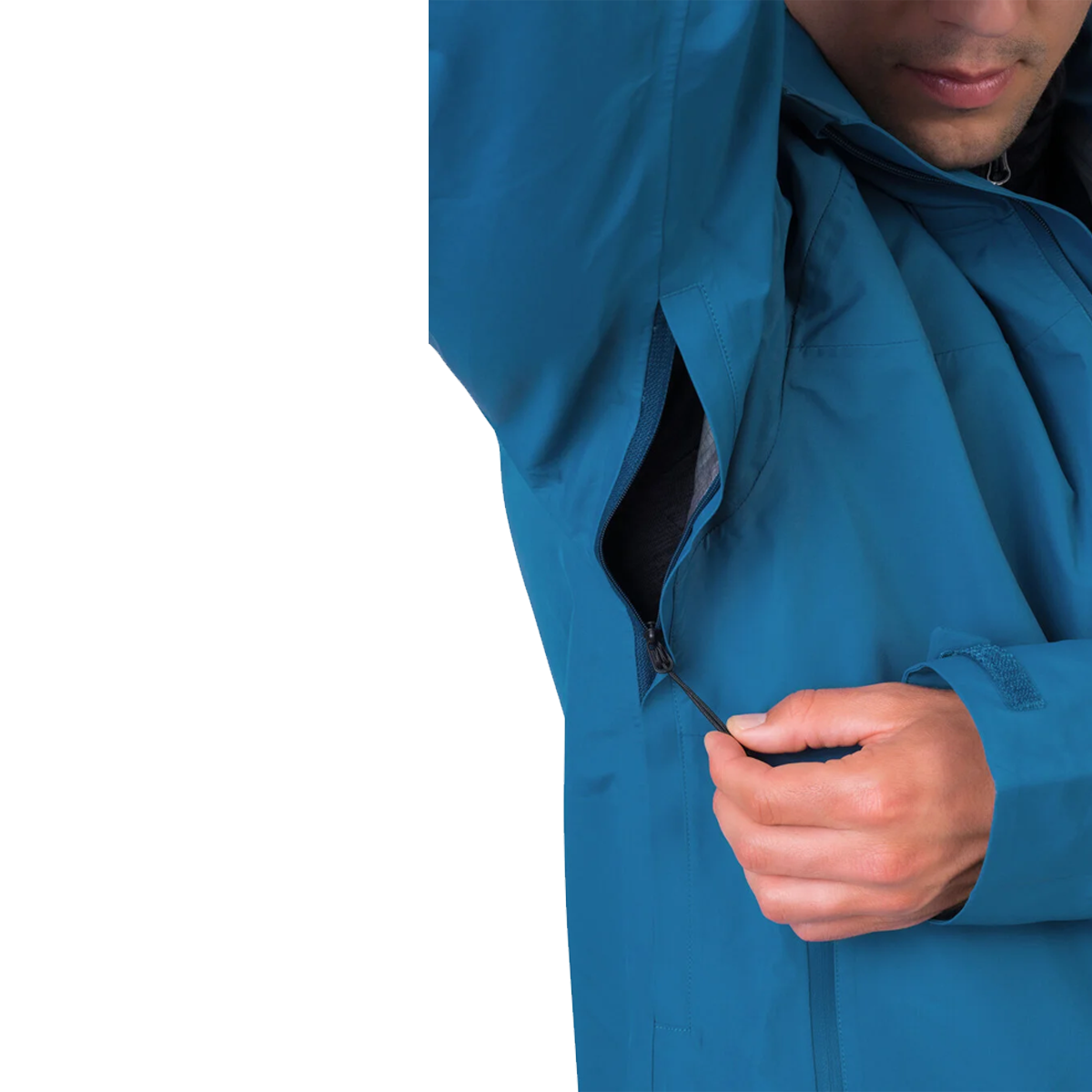 Çukur fermuarlar daha yüksek nefes alabilirlik sağlarken, tamamen bantlanmış dikişler ve su geçirmez fermuarlar ceketin genel su geçirmezliğini sağlar.