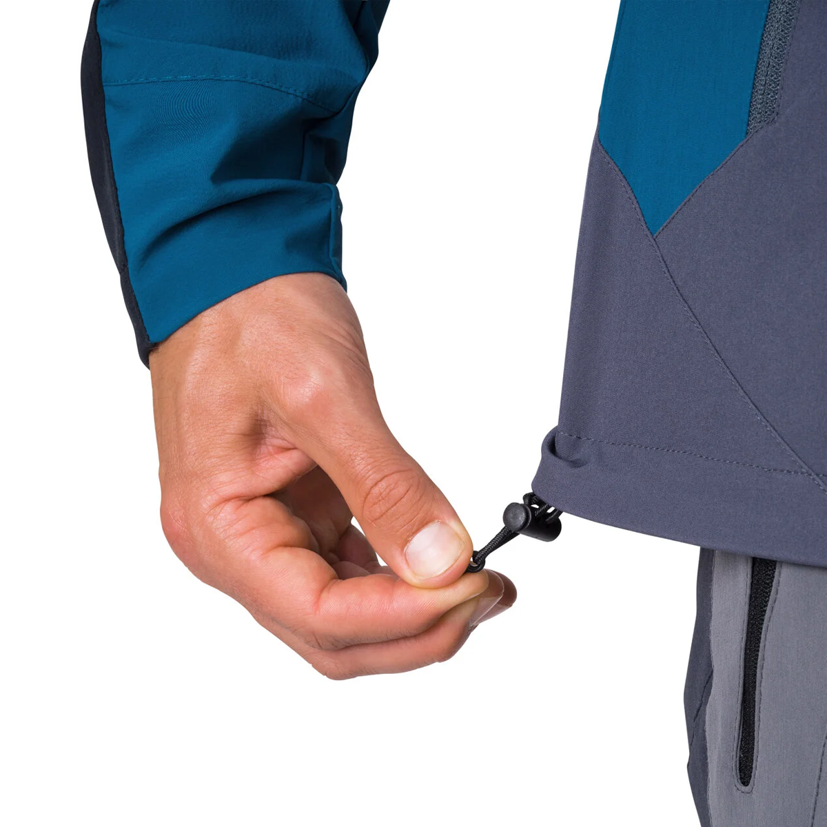Hannah Carsten, dengeli bir nefes alabilirlik ve su geçirmezlik oranına sahip 8000 membranlı hafif softshell erkek ceketi.