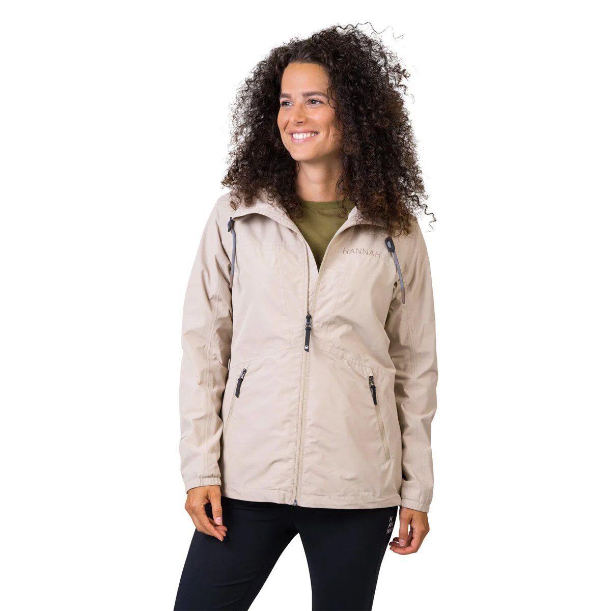 Hannah Goldie, resstex 8000 membranlı, su geçirmez ve nefes alabilen kadın ceketi. Kapüşon, önceden şekillendirilmiş kolların ucunda da bulunan elastik bir bantla çevrelenmiştir. Alt kısmı kolaylıkla ayarlanabilir. Ceketin rahatlığı ve nefes alabilirliği file astarla artırılmıştır.