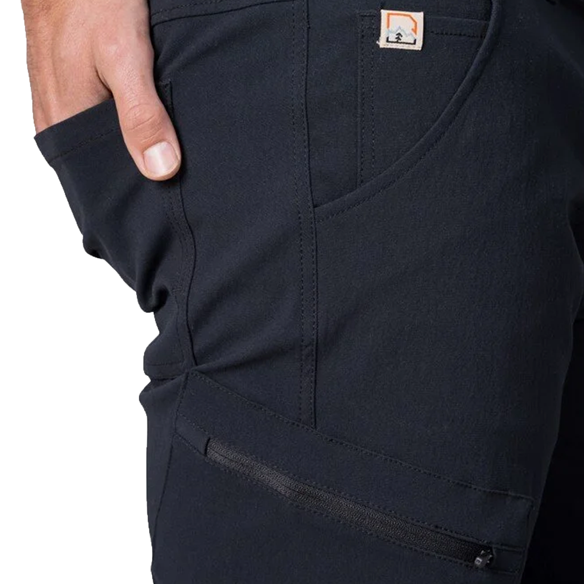 Entegre küçük bozuk para cebine sahip iki ana cep ve iki arka cep. Ayrıca iki adet fermuarlı uyluk cebi bulunmaktadır.