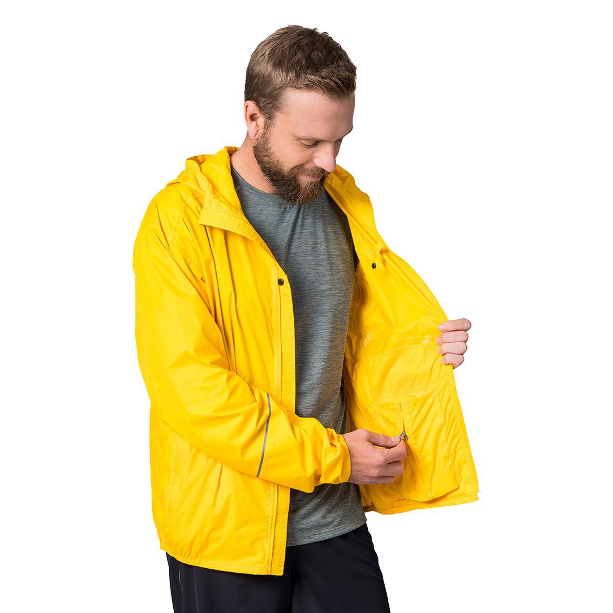 Ani yağmurlardan koruma sağlayan yedek ceket olarak geliştirildi. Su ve rüzgar geçirmez malzemeden üretilmiş olup kolaylıkla kendi cebine sığabilir.