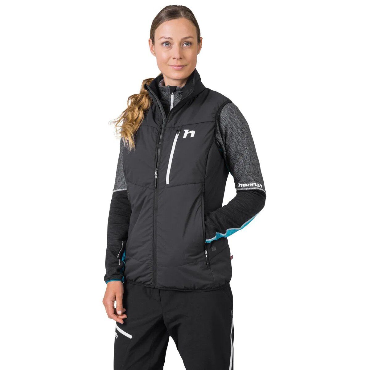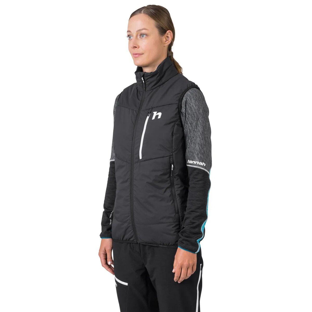 Hannah Nava Vest, Airlite Windproof ve AFT Double Weave kombinasyonu, kuru kalmak için rüzgar ve yağmur korumasına sahiptir, aşınma dirençlidir ve hızlı ter giderici özelliktedir.
