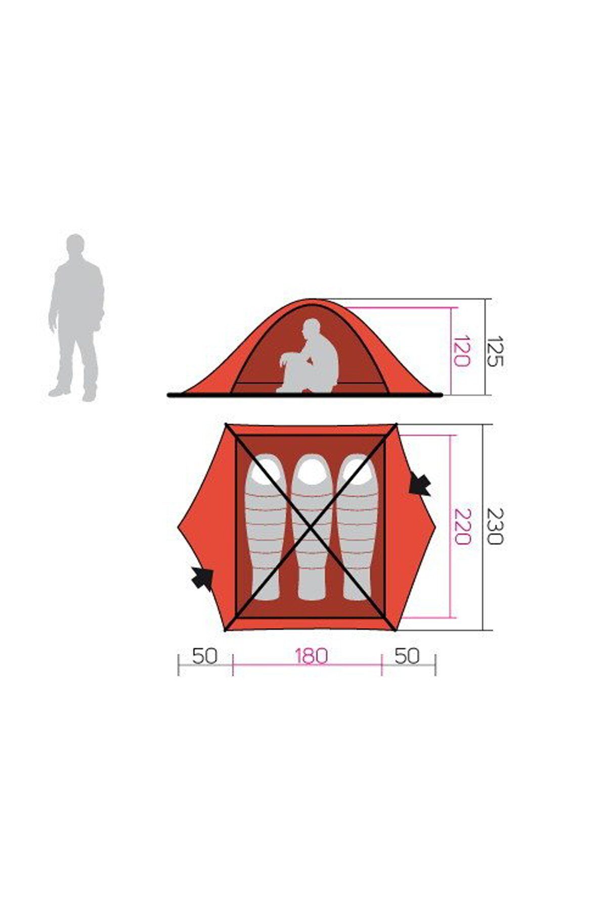 Çadır Boyutları: 280X230X125cm