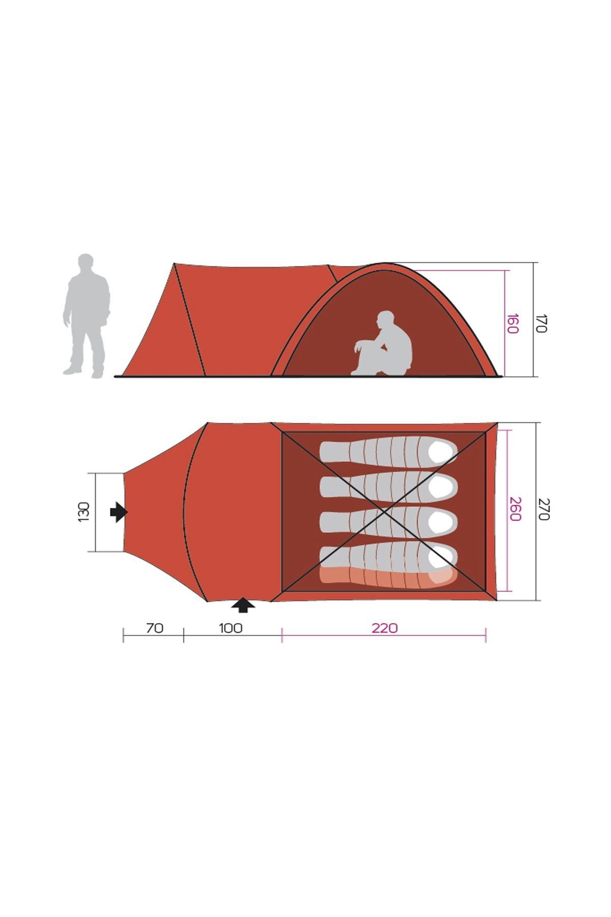 Çadır Boyutları: 390X270X170