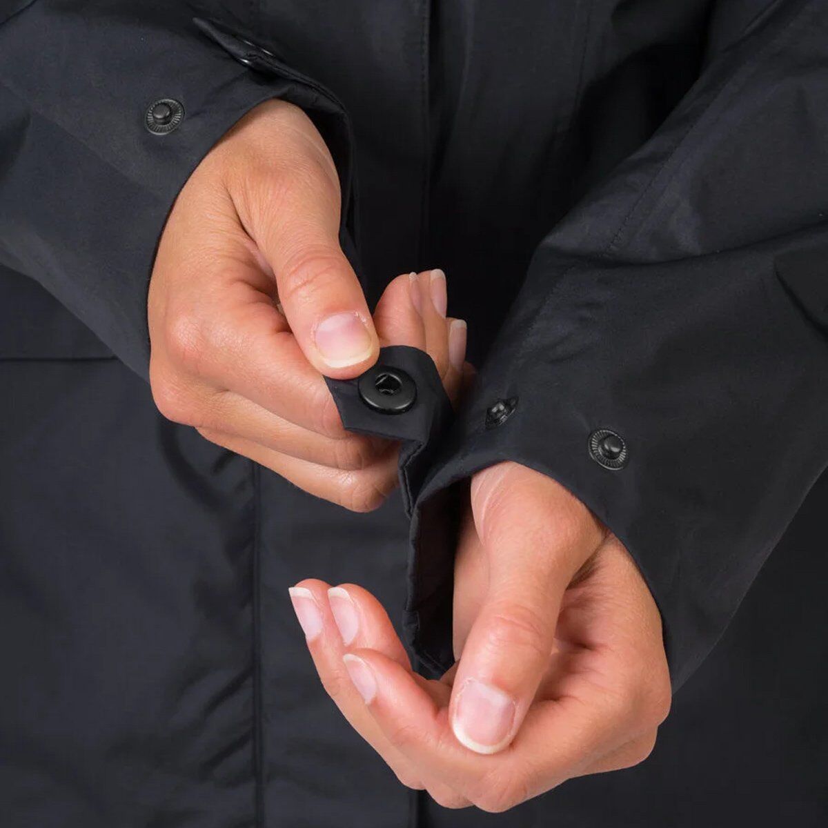 Ayarlanabilir bir kapüşona ve ayarlanabilir manşetlere sahip önceden şekillendirilmiş kollara sahiptir.