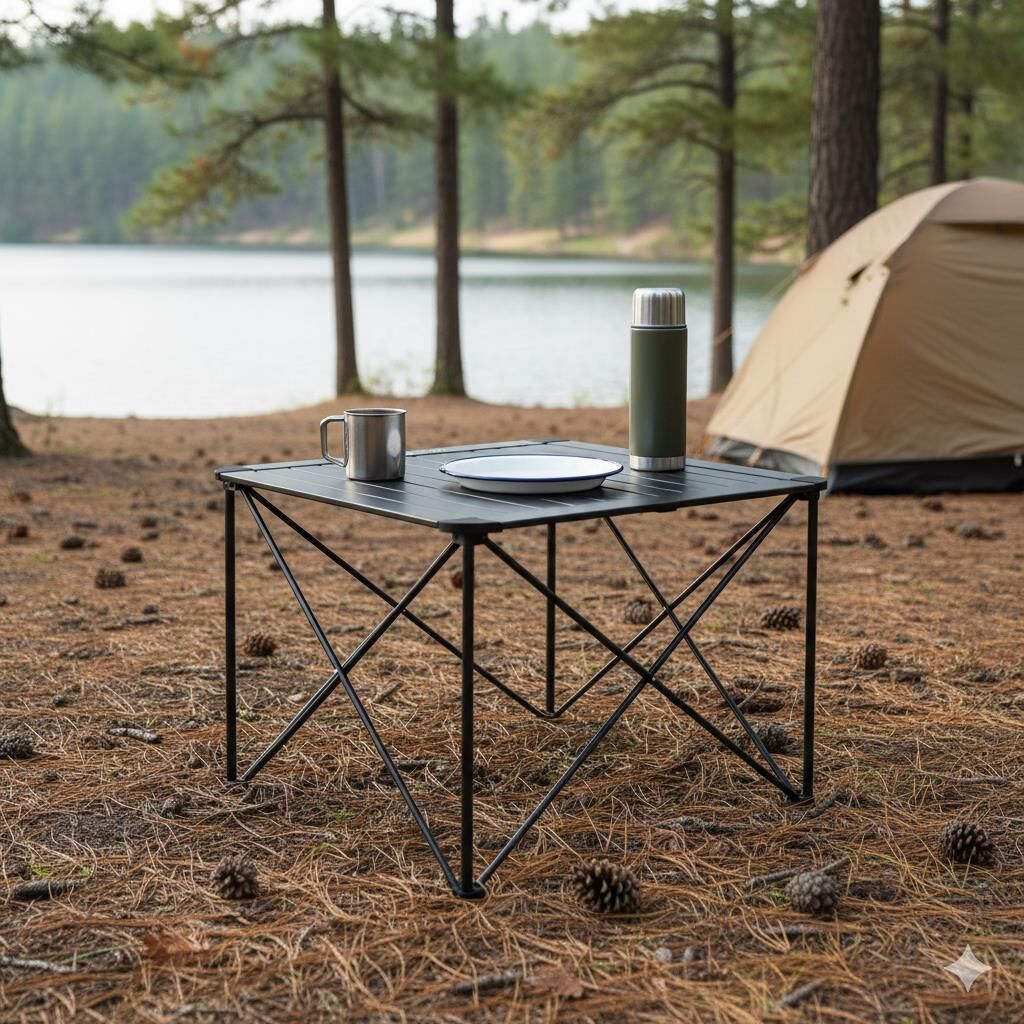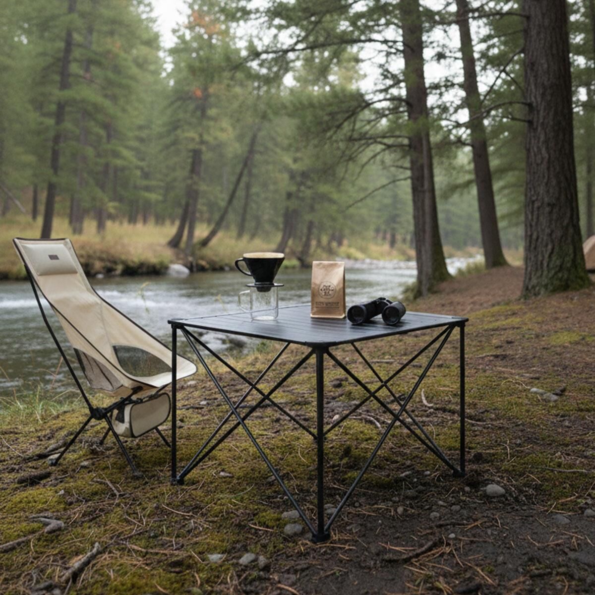 Alüminyum lamelli üst tabla, sıcak-soğuk eşyalara karşı dayanıklı yapısıyla her ortamda stabil bir yüzey sağlar. X-form destekli iskeleti, zeminde maksimum denge sunarken, masanın sallanmasını minimuma indirir. Katlanabilir yapısı sayesinde saniyeler içinde kurulabilir, özel taşıma çantası ile rahatça taşınabilir.