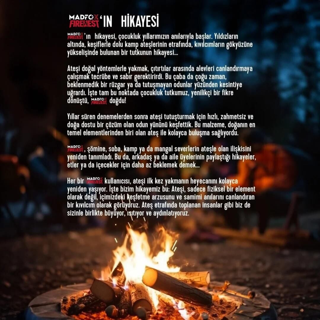 Madfox ile ateş yakmak artık zahmet değil, keyif. Doğallığı, gücü ve pratik kullanımıyla ateşi sevdirir; her alevde sıcak anılar biriktirmenizi sağlar.