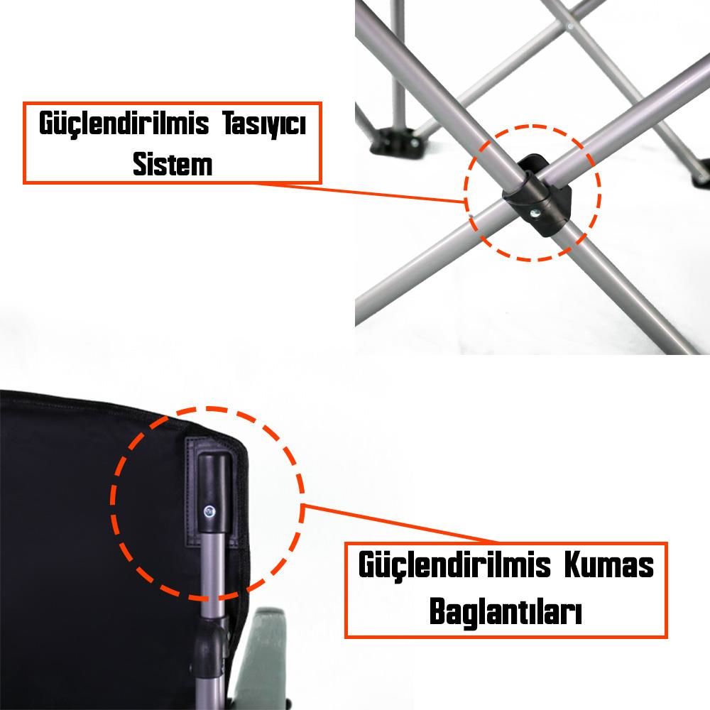 * Sert kolçak yapısı, kalkış sırasında kollarınıza sağlam bir destek sunar. Dayanıklı çelik çerçeve, zorlu dış mekan koşullarına karşı dirençlidir. Bu tasarım, kamp sandalyesi modelleri arasında öne çıkmasını sağlar.