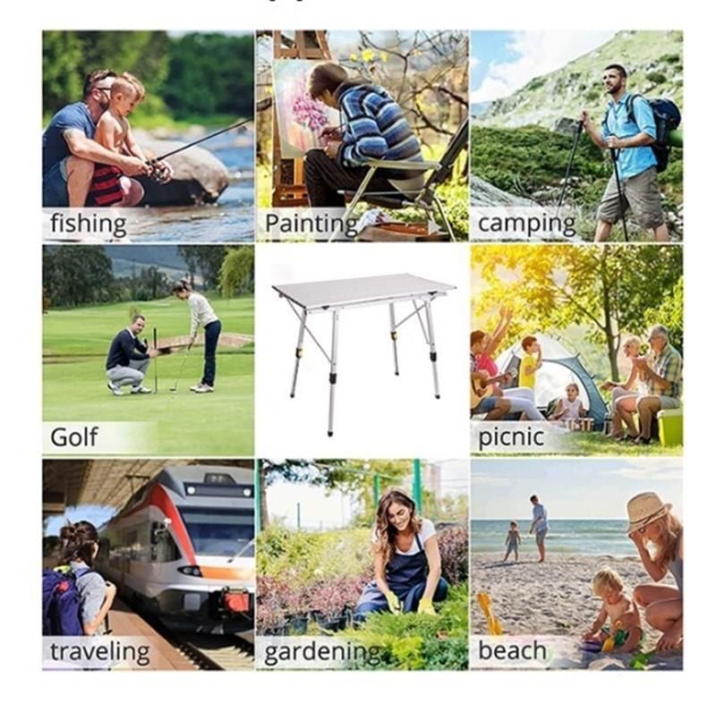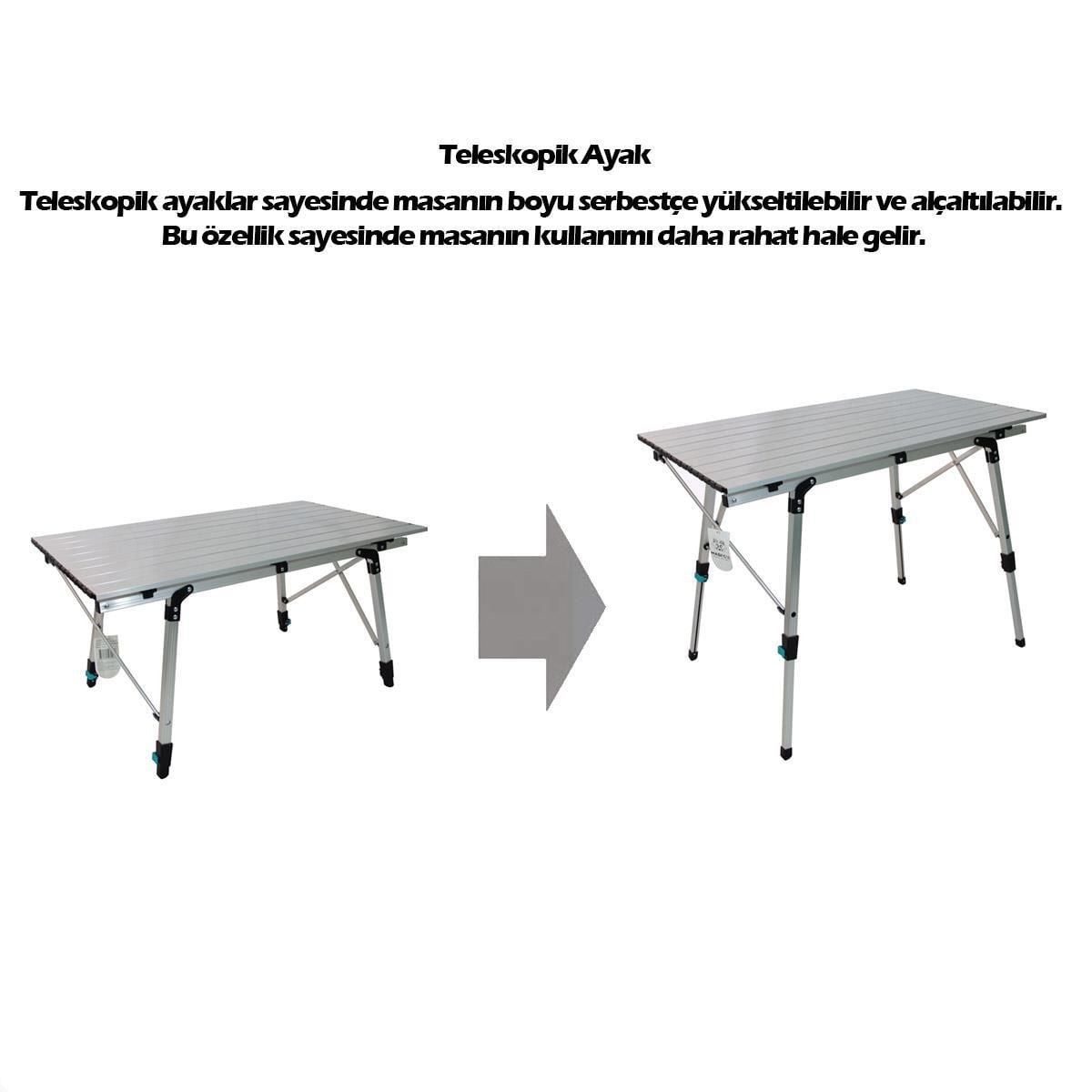 【TAŞIMI KOLAY】: Alüminyum çıtalı masa üstü yuvarlanabilir. Ayaklar kaymaz ayaklarla katlanabilir. Birlikte verilen taşıma çantası, masayı kolay saklama ve taşıma için son derece kompakt hale getirir