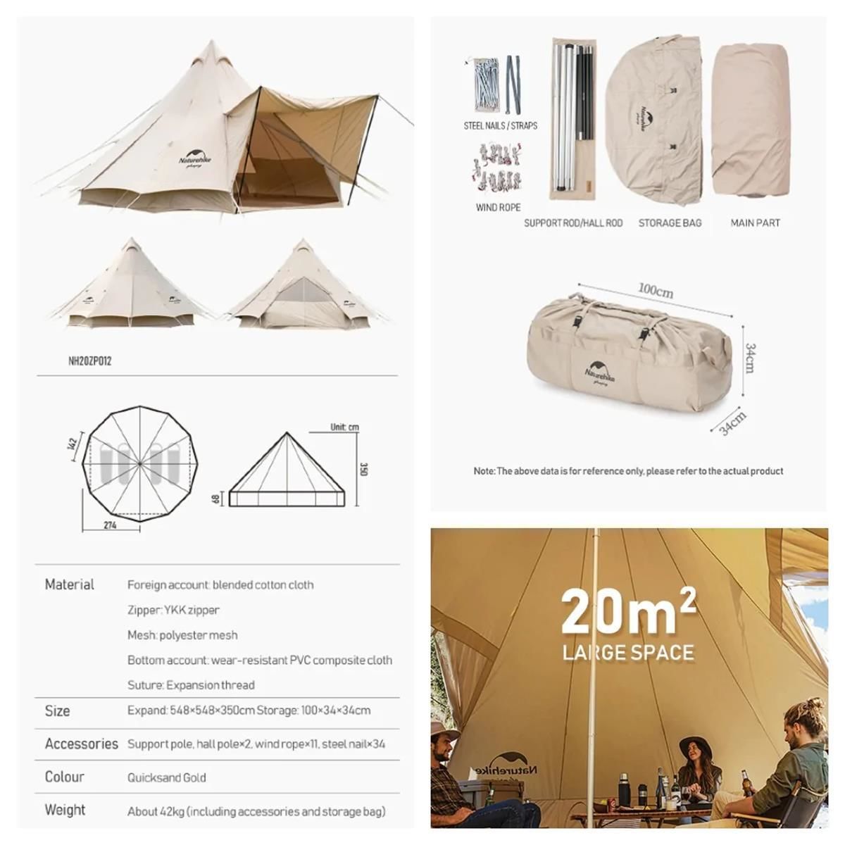 NATUREHİKE BRİGHTEN 20 M² LÜKS PİRAMİT PAMUK GLAMPİNG ÇADIRI