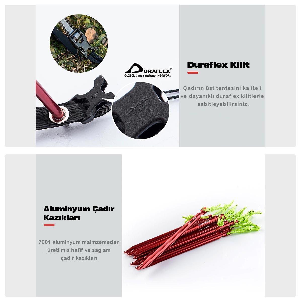 · Su Geçirmezlik: Naturehike 2 kişilik çadır 210 T modeli 3000 PU polyester dış çadırı ve çadır matı son derece sağlam ve su geçirmezdir. Su ve rüzgar geçirmemesi için fabrikada dikişleri kapatılmıştır.