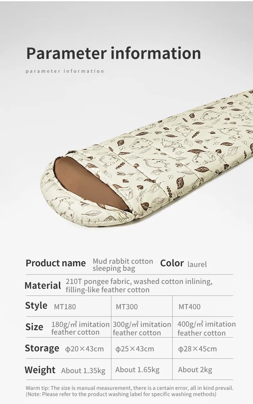 Naturehike Cute Mud Rabbit MT400 Zarf Trazı Pamuklu Uyku Tulumu -18°C