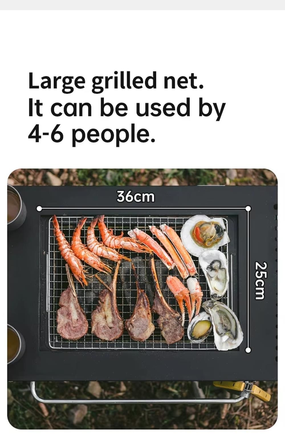 Açık hava barbeküleri ve piknikler için çeşitli malzemeleri, mutfak gereçlerini ve çatal bıçak takımlarını barındırabilecek geniş bir çalışma alanı sağlar; Isıya dayanıklı malzemelerden yapılmıştır, iyi bir sağlamlığa ve dayanıklılığa sahiptir ve çeşitli ortamlarda kullanıma uyarlanabilir.