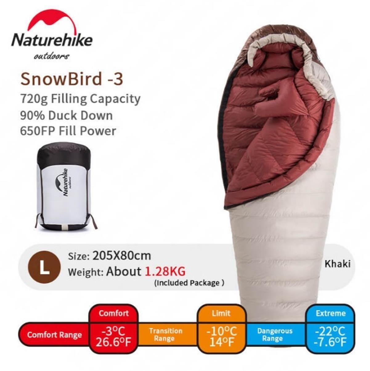 Naturehike L/720G Snowbird Ördek Tüyü Mumya Uyku Tulumu -22°C