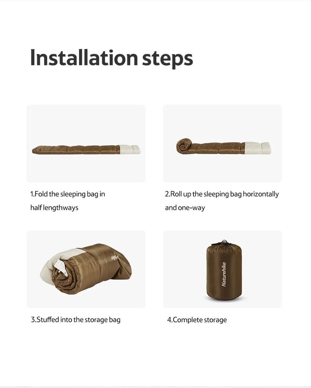 Naturehike'tan 80Gsm pamuklu astar tasarımına sahip Uyku Tulumu, kampınızı rahat hissettirir. Uyku tulumunun mevcut sıkıştırma ile saklanması da kolaydır. Bu uyku tulumu su tutmaz, cilt dostudur ve çıkarılabilir ve yıkanması kolaydır.