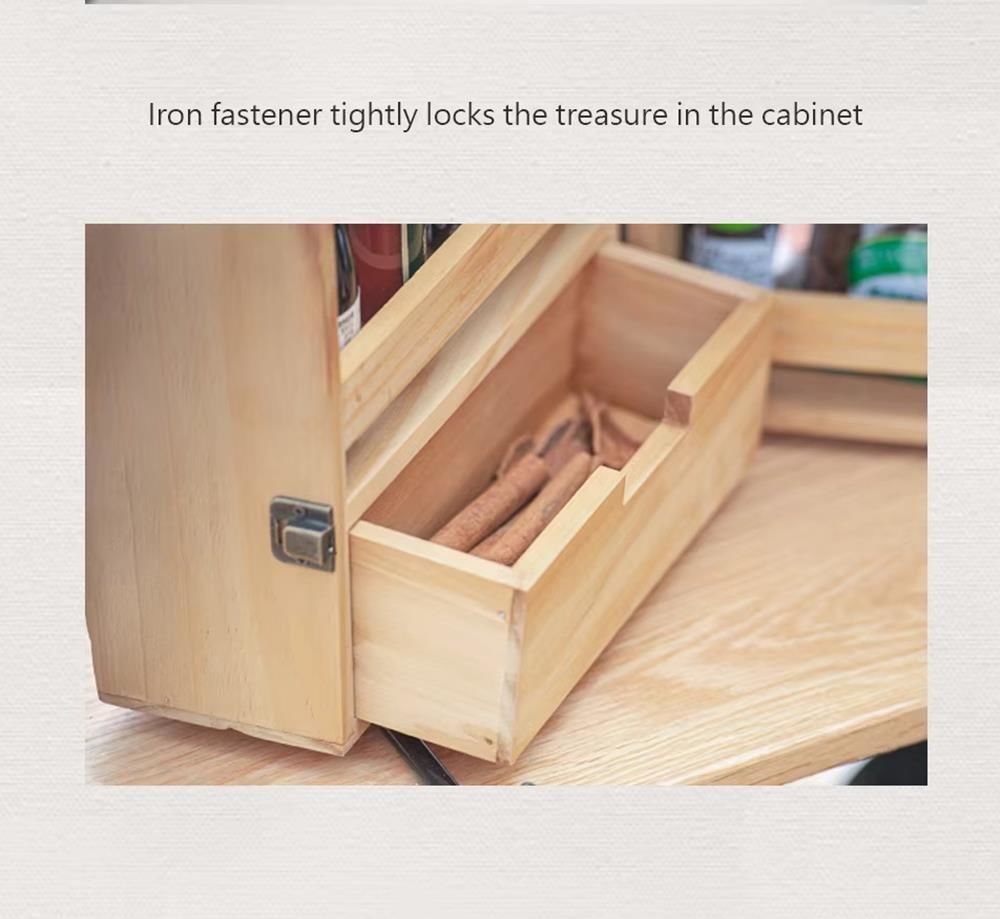 Bu ahşap dolap baharatları saklamak için kullanılabileceği gibi diğer çeşniler için de kullanılabilir.