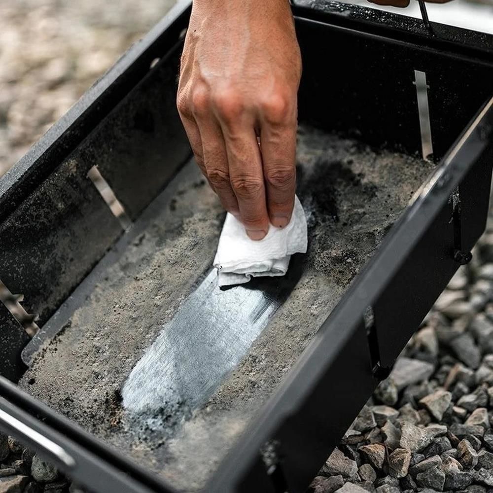 Masa soğuduktan ve kurum, yemek artıkları ve yağdan arındırıldıktan sonra 645 x 405 x 70 mm boyutlarına katlanabilir. Bu pozisyonda alet tutucusu bir tutamağa dönüşerek 6,7 kg ağırlığındaki katlanmış masanın taşınmasını kolaylaştırır.