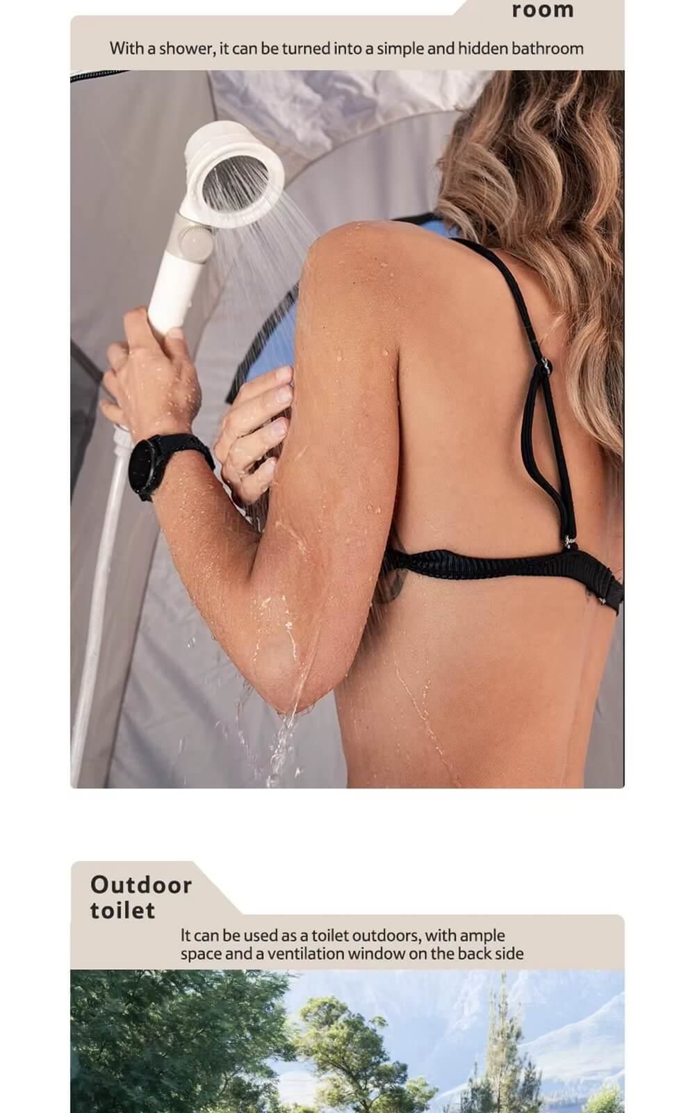 Bu hijyenik çadır, mahremiyet endişesi duymadan kamp alanınıza tuvalet veya duş eklemek için idealdir.