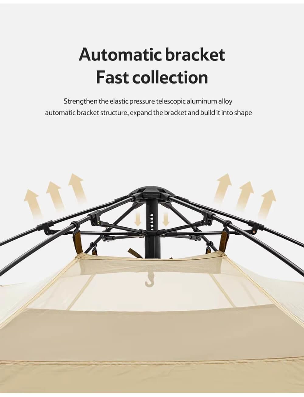 Çadırın kendinden katlanan bir çerçevesi vardır.