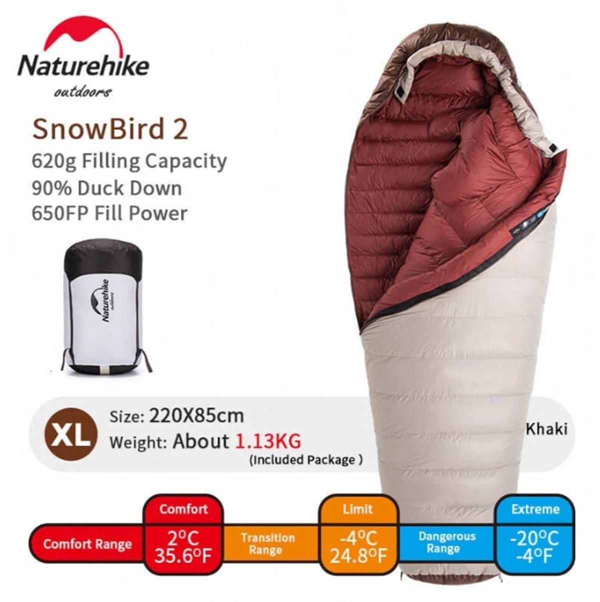 Naturehike XL/620G Snowbird Ördek Tüyü Mumya Uyku Tulumu -20°C