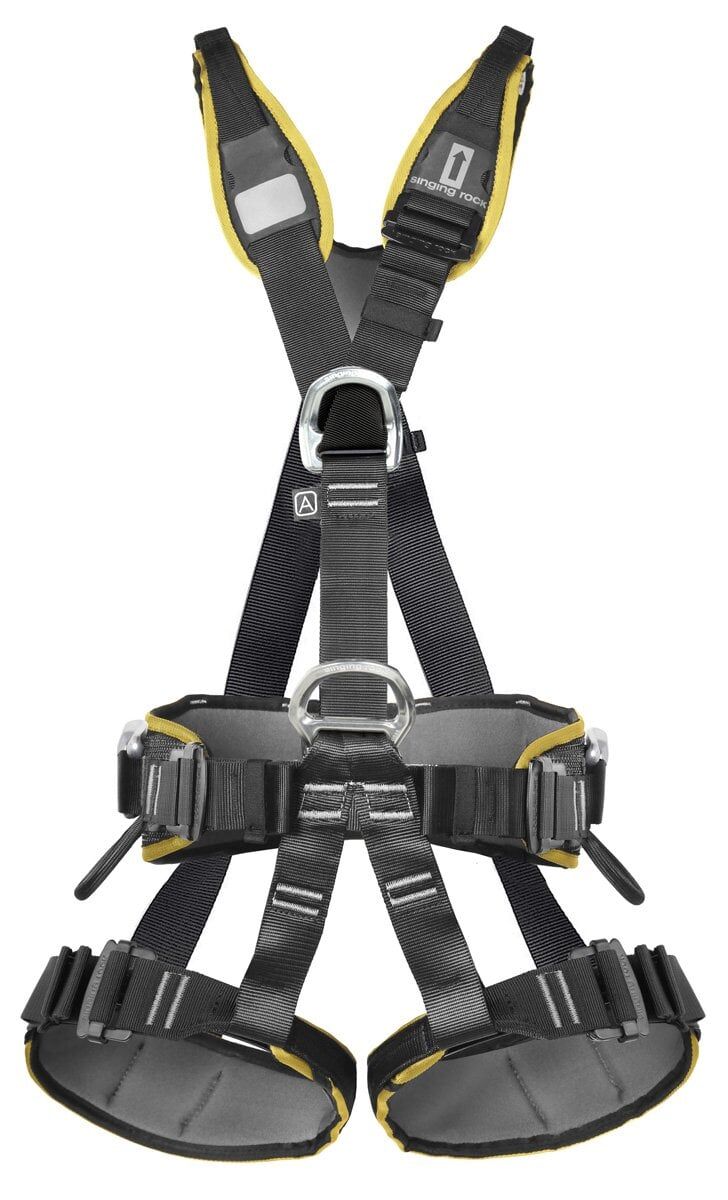 Singingrock Profi Worker Standard III, bacak halkaları ve omuz askıları ile iple erişim için tamamen ayarlanabilir emniyet kemeri.