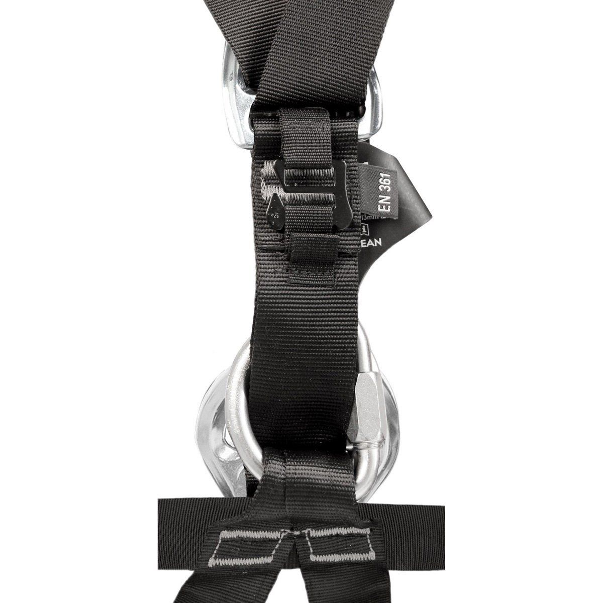 EN 813'e göre inen yerleştirme veya çalışma konumlandırması için ön alt bağlantı noktası EN 358'e göre iş konumlandırması için 2 yan bağlantı noktası, 5 kg taşıma kapasiteli, 2 örgülü dişli halkası Bel kemerindeki dokumaya 35 kg'a kadar daha ağır eşyalar takılabilir 5 kg taşıma kapasiteli ek halkalar, dişli için ek alan ve daha iyi dişli yönlendirmesi sunar.