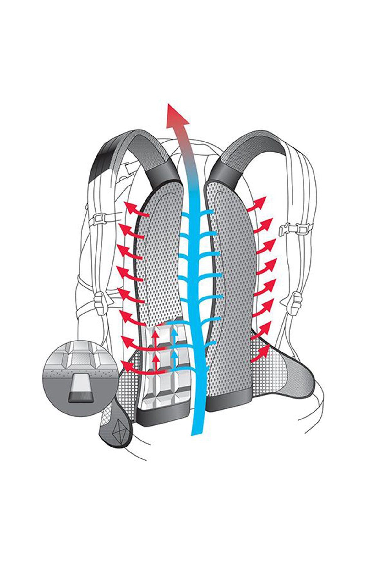 daha az terleme anlamına gelir: İki hava kanallı köpük şerit ve havalandırmalı örgü yapısı sırt ile olan temasın minimum olmasını garanti eder.